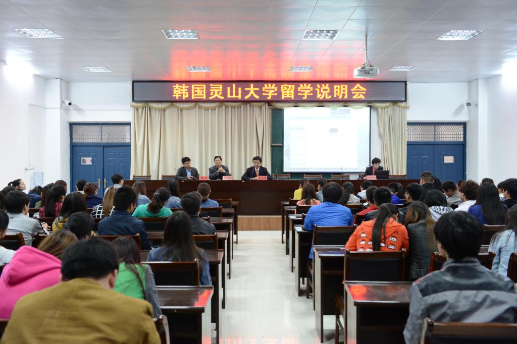 双方首先进行了会谈。在亲切友好的气氛中,双方简要地介绍了各自学校的基本情况和国际交流合作情况,随后又在留学合作项目和学术互访、交换生互派等方面进行了探讨。会谈结束后,举办了韩国留学专场说明会,刘伟汉先生介绍了韩国留学概况以及相关风土人情和生活学习费用等情况,引起了学生的极大兴趣和反响,有学生当场报名参加对韩交换生项目。