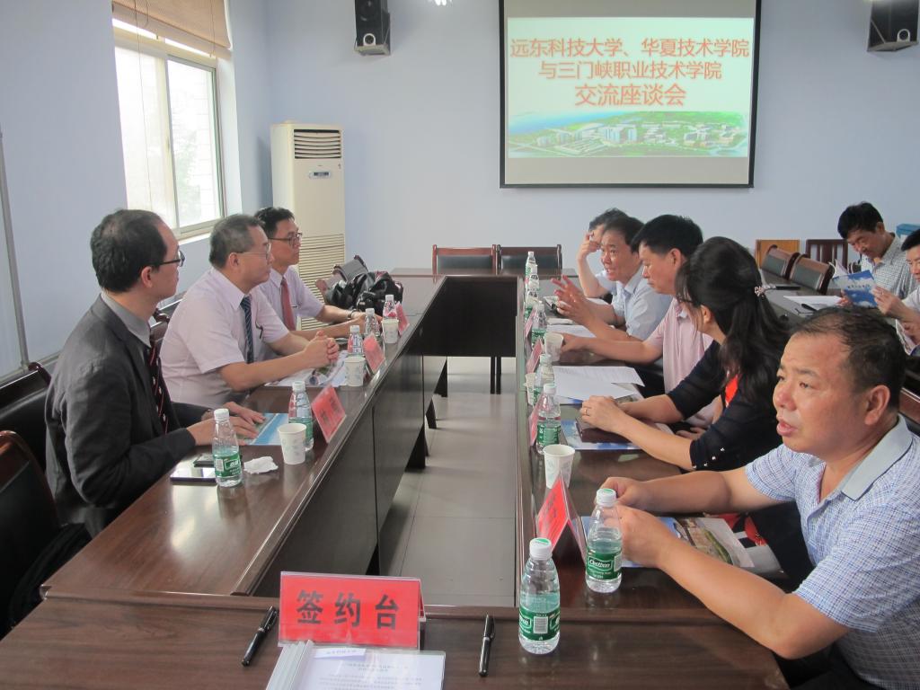 8月5日,台湾华夏科技大学副校长郭景致教授和国际与两岸交流中心主任林葳教授以及远东科技大学陈坤上教授一行3人到我校考察职业教育发展情况,洽谈合作办学事宜。三门峡市委常委、组织部长、市高工委主任赵予辉出席了会见,市台办主任毋慧芳,我校党委书记郑建英、校长吴勇军、常务副校长李久昌、党委委员袁文山及有关部门、院部的负责同志参加了座谈。