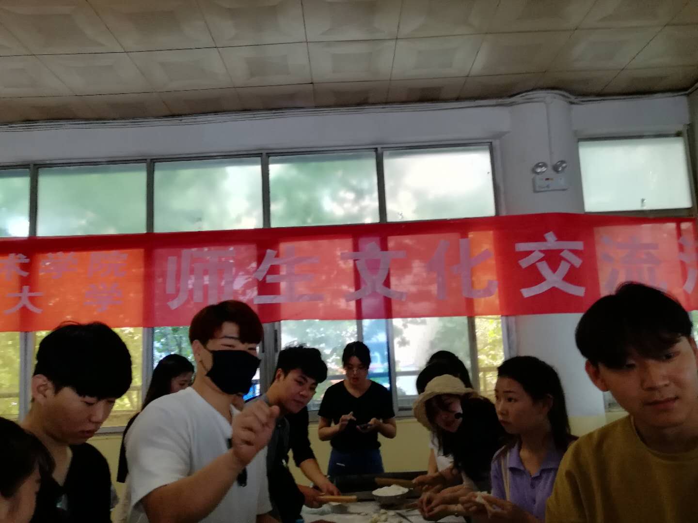 中韩学生包饺子