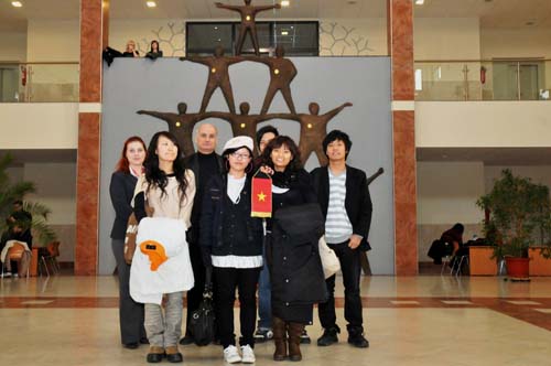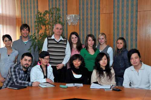 (留学生与老师合影)