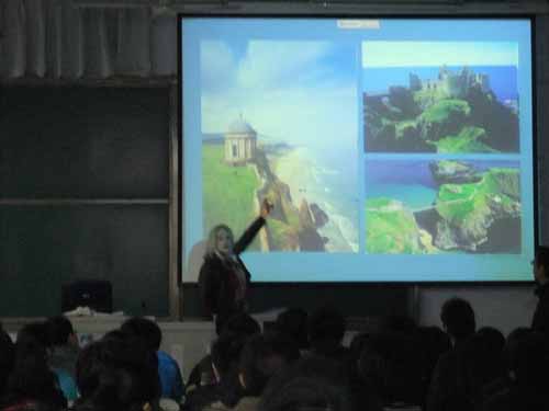 3月28日至4月1日,爱尔兰唐道克理工学院教师克里斯汀(Christine)对我院2010级学生进行了为期一周的英语语言培训。一方面,克里斯汀通过丰富、生动的图片、音频和视频资料向同学们展示了爱尔兰独特的民族风情与文化,使同学们在初步了解爱尔兰文化的基础上极大地增强了英语学习的兴趣;另一方面,克里斯汀通过标准的口语、丰富的表情、幽默的动作、积极的小组活动、有趣的室外情景授课等方式向同学们展示了一种全新的口语授课模式,激发了同学们参与课堂和与老师交流的主动性;同时,也为我院“雅思”教师今后的课堂教学改革提供了一个创新的借鉴。